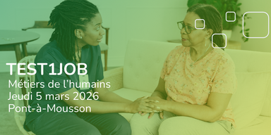 Et si vous découvriez les métiers de l'humain autrement ? Le Forum Test1job invite les jeunes, les publics en insertion et le grand public à explorer concrètement les métiers du sanitaire, du social et de la petite enfance, au coeur d'une après-midi immersive et interactive